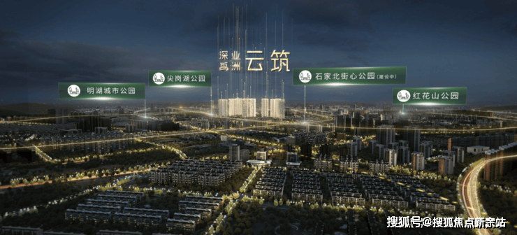 公园:紧邻石家北街心公园(规划中),500m享尖岗湖公园、2km范围红花山公园