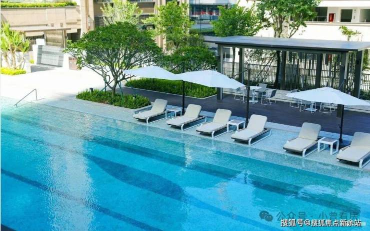 度假式双泳池设计,为成人和儿童打造欢乐空间。泳道旁更配置日光沐浴区和会客空间,让泳池成为夏日社交现场