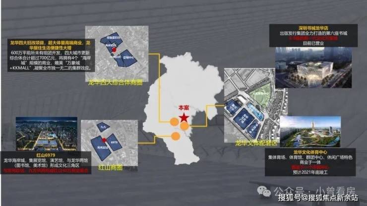 片区超40个龙华现代商贸片区旧改,总建面超千万平;约600万㎡体量的龙华4大旧改位于项目约两公里处,建成4个比肩“海岸城”规模的商业体。