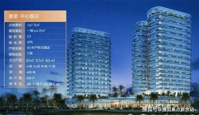 瀚星·中心假日由吉林瀚星集团开发建设,项目组占地面积约1.66万㎡,一期建筑面积约6.4万㎡,容积率2.5,绿化率40%。楼栋总数为2栋,共558户(对外出售390户),其中A栋4梯22户,共16层,B栋5梯21户,共17层。停车位有280个(地下242、地上38)。