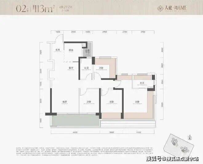户型为113㎡四房114四房和139㎡五房约290套,2栋100米内30层住宅,2梯5户,其中主力为113㎡四房,整体以朝南及西南为主,有两套朝东北面向金众。