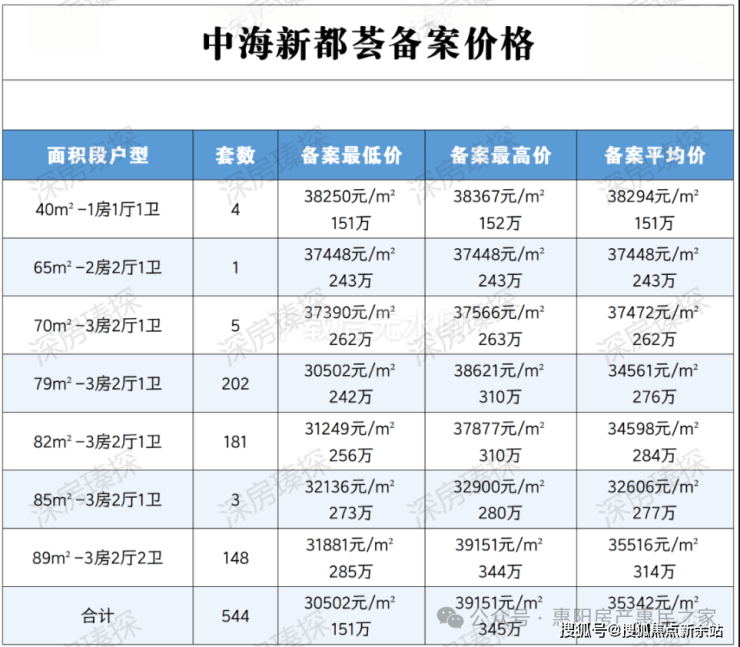 龙岗龙东,中海新都荟于2024年1月17日取证入市,本次推出1栋1/2/3/4/5/6单元,共544套房源,面积有79-82㎡的3房2厅1卫,89㎡的3房2厅2卫户型,备案均价3.53万/㎡,备案单价3.05-3.91万/㎡,总价151-345万/套,计划在2025年10月底前带精装交房。