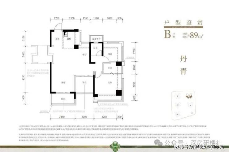 89㎡的3+1房2厅2卫,设计的是经典竖厅格局,进门入户玄关,客厅3.45米开间,动静分区,三开间朝南,分别做到了主卧14.54㎡/次卧7.96㎡/次卧7.56㎡/次卧5.8m²(包含墙体飘窗),主卧+1个次卧270°飘窗,U型厨房,公卫三段式干湿分离,得房率约102.2%(包含赠送),阳台5.52m²西南或东南朝向。飘窗赠送面积13.17m²+阳台赠送面积6.61m²+设备平台1.8m²=实际赠送面积约21.58m²。
