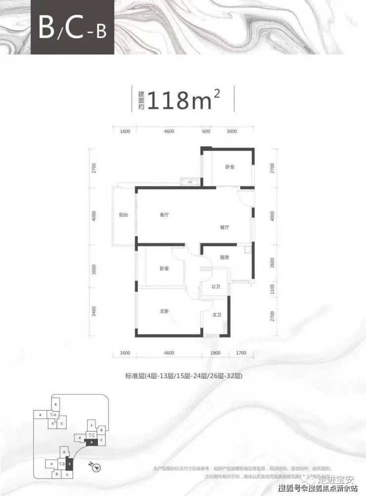 B/C座 B户型:118㎡3房2厅1卫