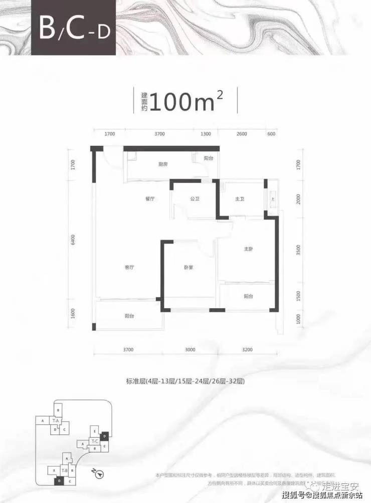 B/C座 D户型:100㎡2房2厅2卫