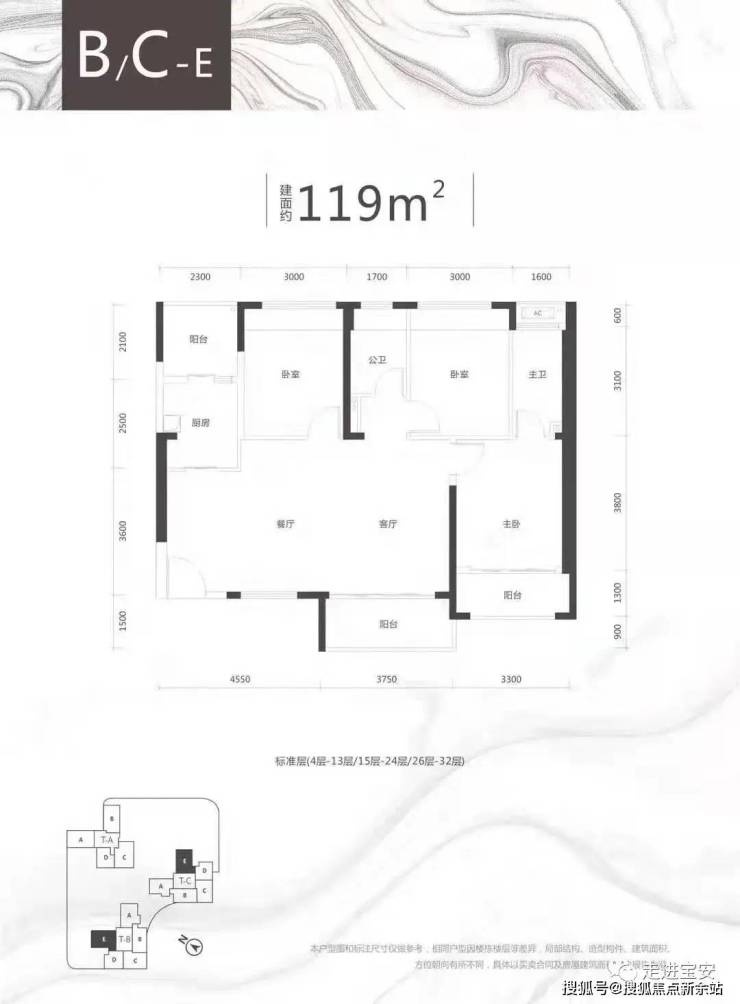 B/C座 E户型:120㎡3房2厅2卫