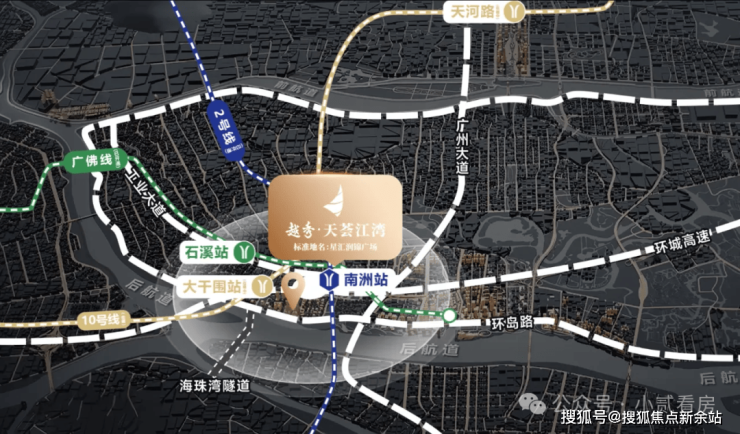 越秀·天荟江湾位于海珠区西南部,一线临珠江后航道,滨水而建,商业建筑面积约55万㎡,集景观公寓、街区商铺、大型商业综合体于一体的滨江综合体,将打造成为海珠南部的商业商务核心。