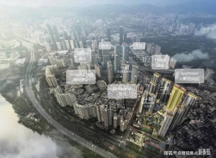 整个中洲湾总占地面积约9.7万㎡,规划总建面约126万㎡,分四期开发,业态包括:住宅建面约56万㎡、公寓与超甲级写字楼21.42万㎡、精品酒店2.18万㎡、Mall及主题商业街区约16万㎡。