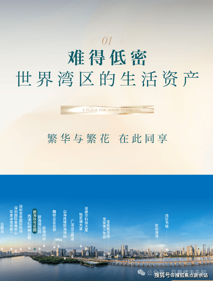 交通配套:项目距离11号线碧海湾地铁站直线距离约600米;西南侧直线距离约800米,步行10分钟内,1站到机场,3站到南山,7站达福田。