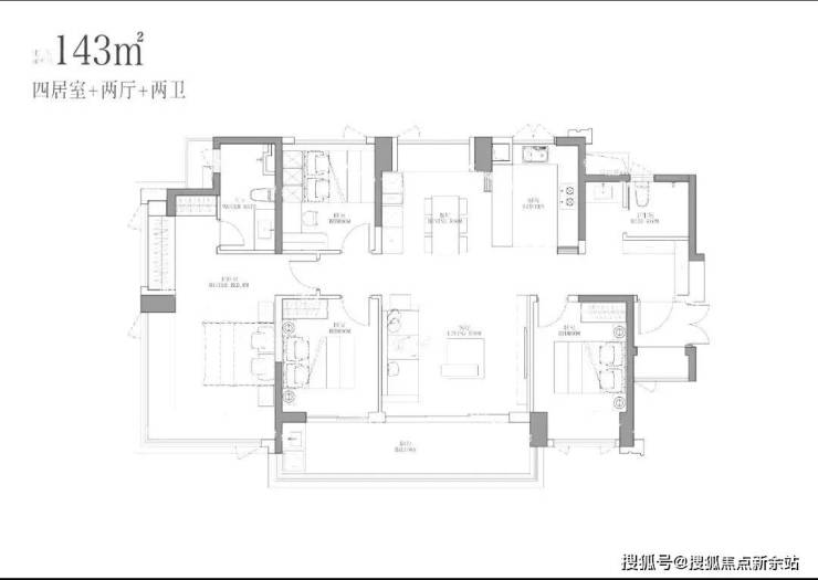 从目前的工规证上看,项目不受7090限制,整个小区没有套内低于90㎡的住宅,全部四房起步。