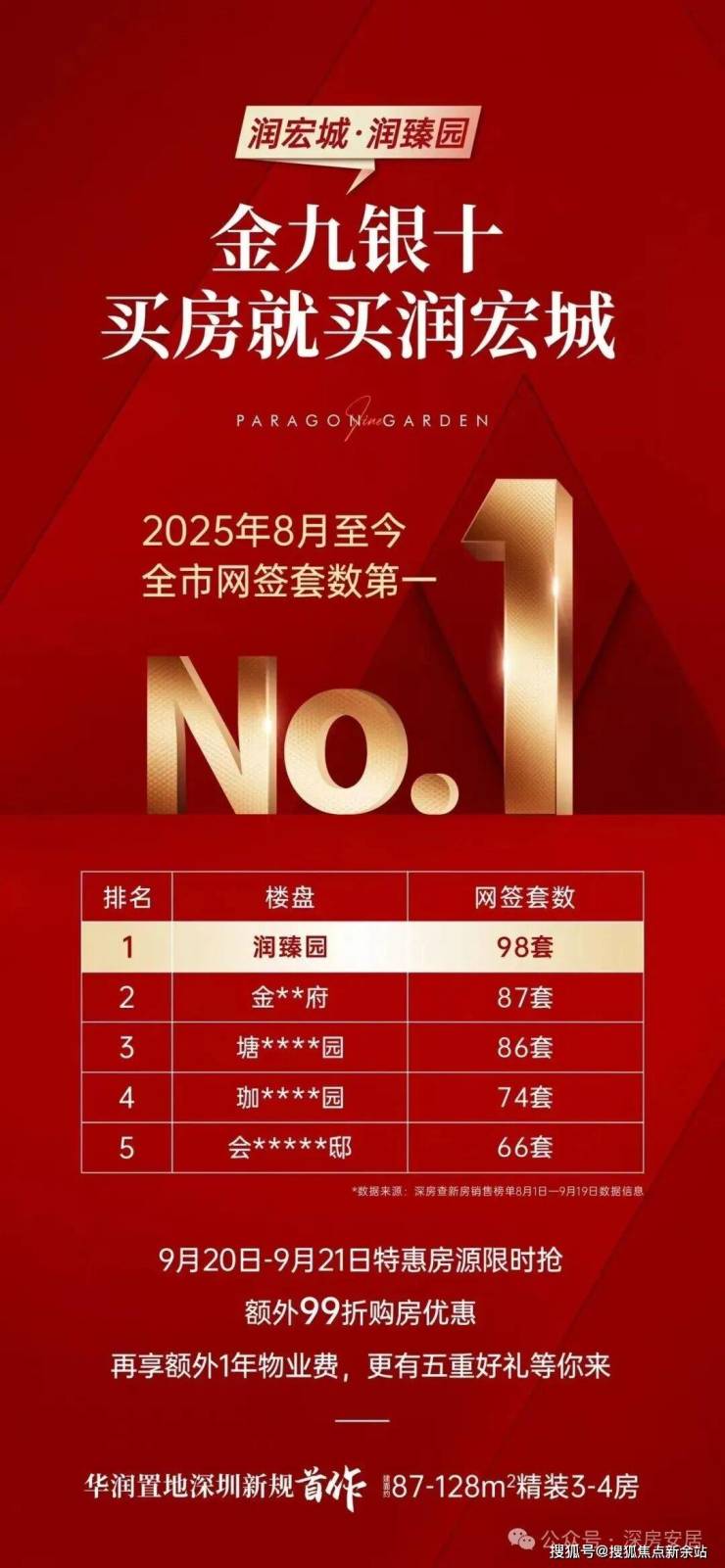 润臻园8月全市网签第一,8月光明成交第一
