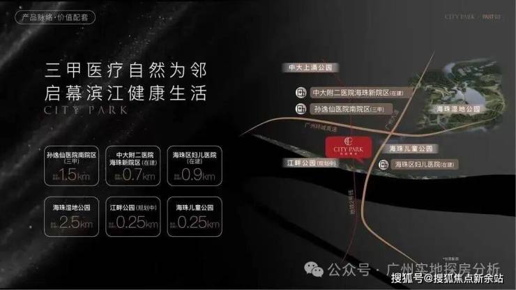 距离项目3公里范围内有海珠区妇幼医院,中山大学孙逸仙纪念属医院,暨南大学口腔医院,广州粤海医院等。