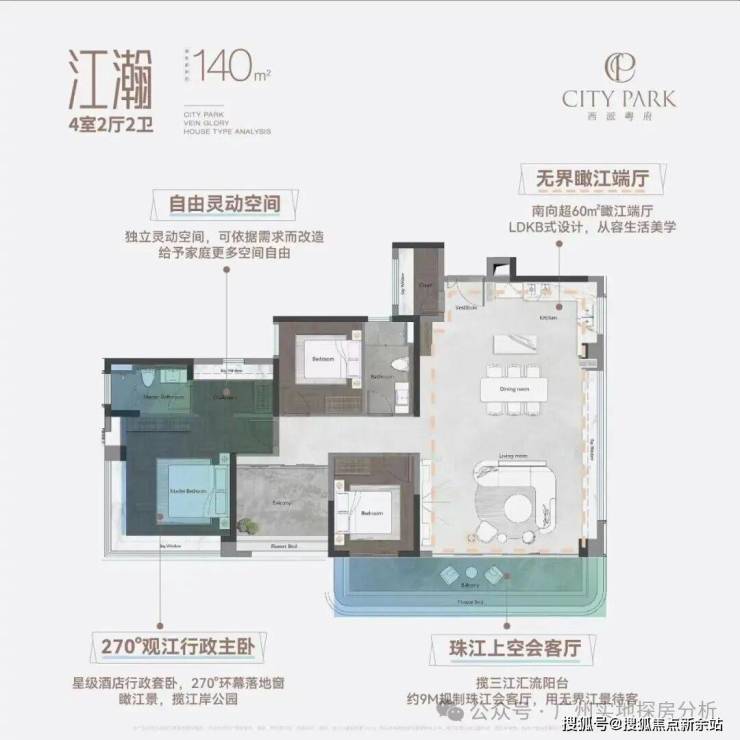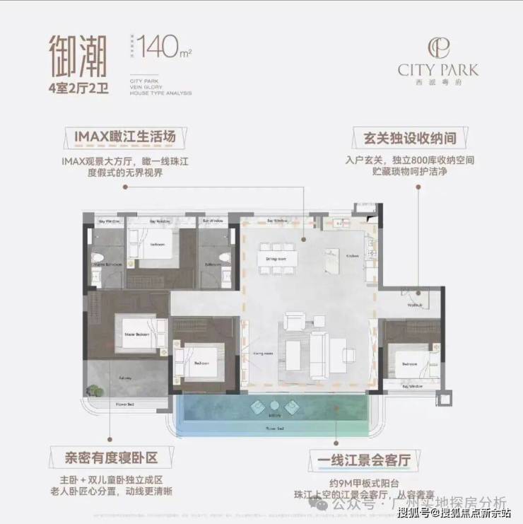 南向望江,距离珠江直线距离约300米,且根据规划,前方地块未来将建设为公园绿地,不会被高层建筑遮挡,江景视野开阔,稀缺性较高。附近还有海珠儿童公园和磨沙公园。