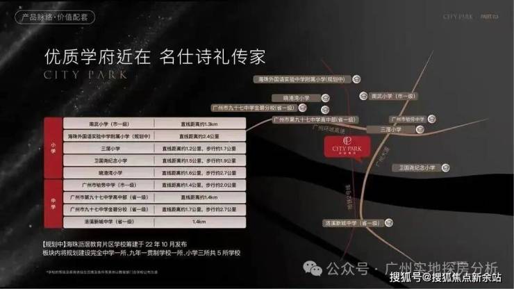 项目直线距离约1.3公里是市一级南武小学,周边还有三滘小学、晓港湾小学等。