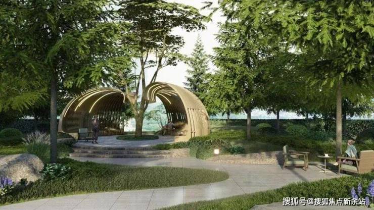 艺术花园是一个惊喜多功能空间,包括遮荫休闲廊架、承载室外会客、邻里交流等的社区场景设计,给人们提供了一个多元的交流、聚会、社交的场所。