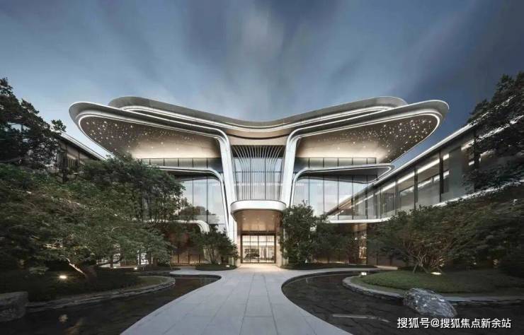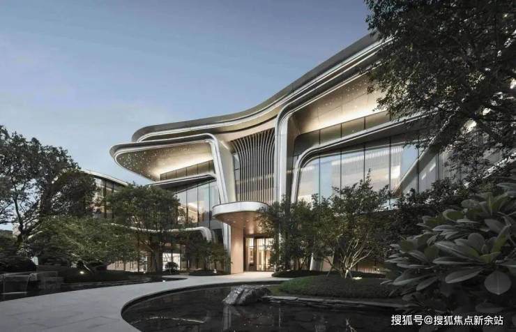 整体立面设计延续了缦云设计语言, 对“云”形态更为细腻的提取和淬炼,在强调立面的工艺品质的同时,利用极具流动美感的曲线叠加,提升优化了建筑体量,令建筑充满未来感和标识性,立面形态更加飘逸,富有张力。