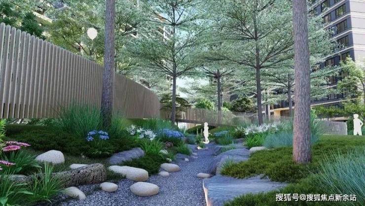 社区绿化以“森居”为设计理念,为业主打造了植被多样、层次丰富、质感突出的林地景观。以花草、灌木、花树、乔木构建高低有致的四重景观层次,融合自然之美体现社区品质。让空间在绿意里延伸,绿意在空间中成长,在门口即可感受自然之美。