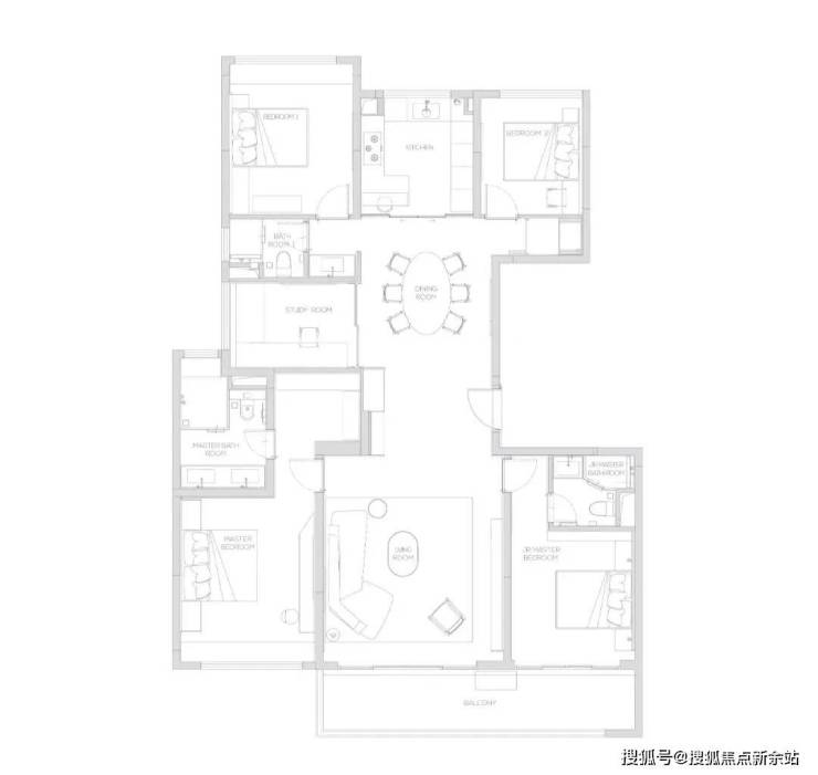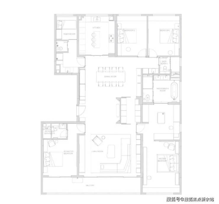 190产品为五房两厅三卫产品,充满了对云端人群生活的独特见解,南向双主卧,中西厨布局,打造纵向超长LDK一体化空间,产品所体现的不只是居住产品,更是特属客群所拥有的生活方式。△174-户型图