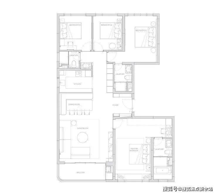 174产品为四房两厅三卫产品,打造了端户边厅布局,形成LDK一体化。无界的室内空间畅游体验,在平淡的日常里体验着生活的华章。
