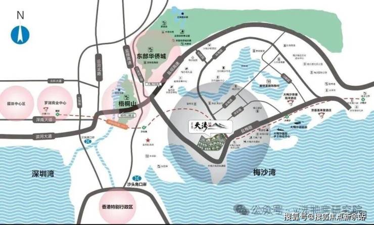 毗邻城市快速路、地铁8号线,约15分钟罗湖中心,约25分钟福田CBD,约60分钟畅达大前海自贸区,从东部的海开往西部的湾。沙头角、莲塘双口岸一站式深港通行。