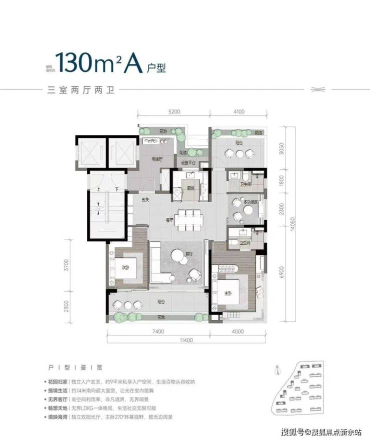 项目是三亚首发类四代宅的创新户型,在产品设计有不少亮点,比如三阳台设计,入户庭院花园打造;再比如全景舱设计,做到U型三面采光,比传统L型多一个景观面。