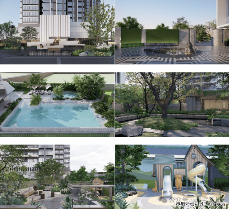 立体森谷园林:特邀城市级公园设计大师【派澜设计】执笔,落地飞瀑会客厅,无边际泳池、双儿童主题乐园等度假场景,将自然垂直植入社区每一个角落。