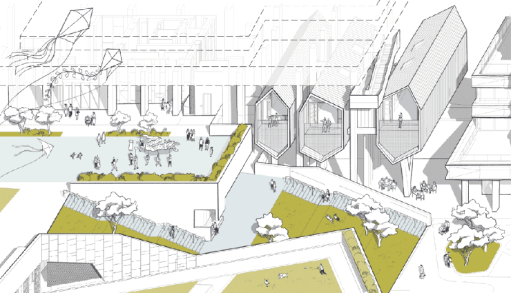 全面设计在这个大型住宅的项目里,OPEN 实践了一贯的“全面设计 (Total Design)”。整个住区的规划和对个体居住生活的想象,是同步开始并且不断交叉进行和互相修正的:从个体对生活空间的需求和对自然的渴望,到室内空间的布局结构,到阳台和屋顶平台,到邻里的空间关系,到景观与建筑的交织融合,到生活设施与服务设施,到住宅和城市以及山与海的关系。