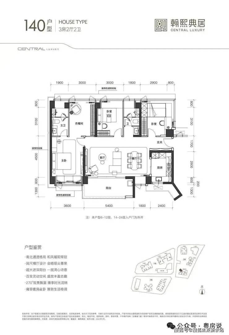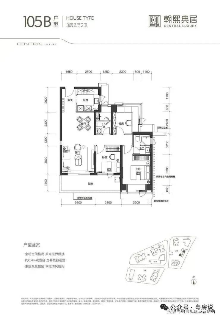 奢阔空间丨中心极境 礼献粤海 翰熙典居,粤海十年之后再上新,全新奢居综合体礼献峯层。可售主力户型新规后建面约105-140㎡奢雅空间,全明方正户型将空间奢阔感与生活舒适度完美契合。明星户型超6米阳台开间,全维度巨幕景观视野,尽揽湾心万千风景。