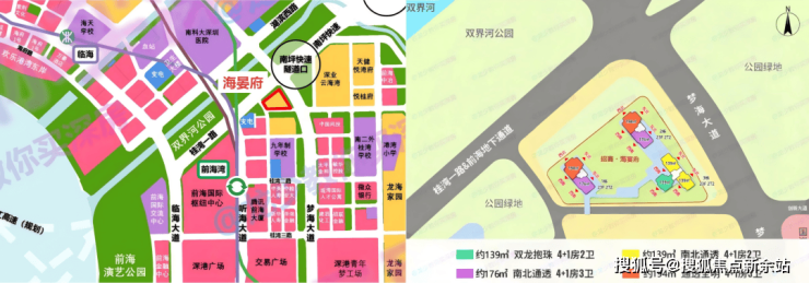 海晏府也是前海首个新国标项目,主打高端改善,项目只有3栋临河小高层,打造151套139-176-194㎡4-5房,2T2/3户,户户朝南。