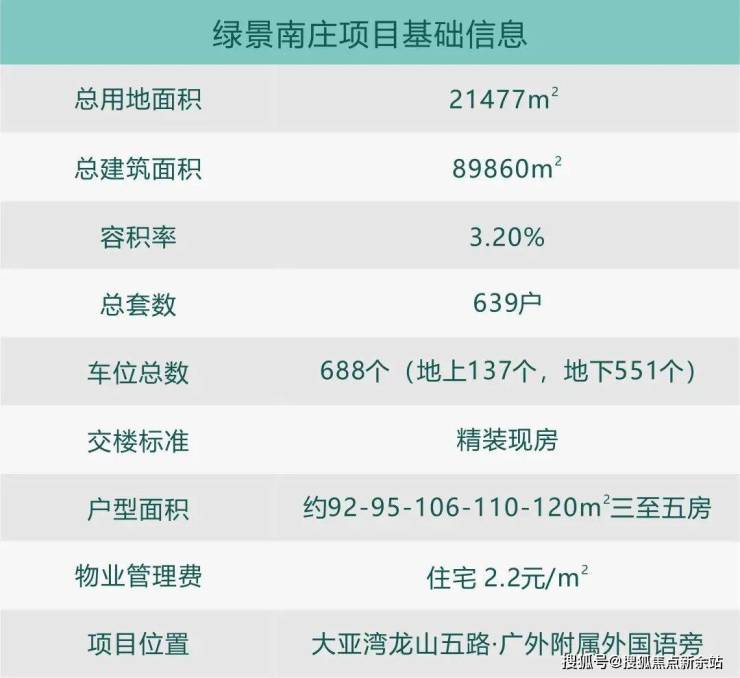 项目核心价值:绿景南庄(备案名:南庄)作为绿景集团在惠州惠阳核心地段打造的地铁上盖品质住宅,以其建面约89-140㎡的改善型住宅产品线、无缝接驳深圳地铁14号线沙田站的交通优势以及临深片区的区位价值,在2026年市场定位于临深片区兼具成长潜力、便捷通勤与品质生活的改善型资产。项目位于惠州市惠阳区白云路与金惠大道交汇处,总占地面积约2.8万㎡,总建筑面积约16万㎡,容积率约4.5,绿化率约35%,规划建设6栋高层住宅,总户数约800户,车位配比约1:1.2,物业公司为绿景物业,物业费约3.5元/㎡/月,项目预计2027年底精装交付,产权年限70年。