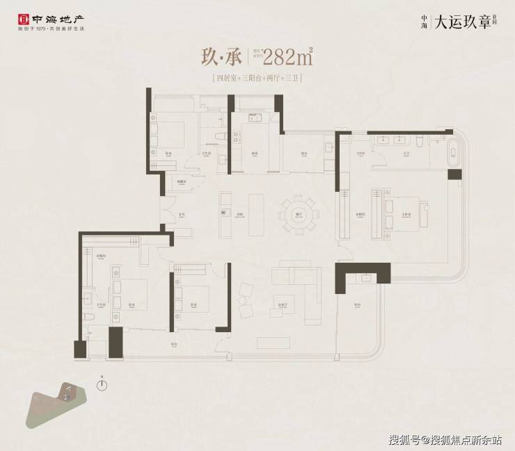 户型面积布局282平四房两厅三卫设计的是竖厅格局,客厅6.2米开间,LDKB大方厅设计,2梯2户,尊享专梯专户,私享超大入户公区,五开间朝南,主卧270°无柱转角飘窗,双套房设计均配置衣帽间,中西双厨房,主卫配置浴缸,得房率约90.6%(包含赠送),不含电梯入户,南北双阳台,小阳台看大运公园山景,大阳台东南朝向,俯瞰整个大运中心。户型亮点总价不到1700万买深圳东部楼王,板楼南北通透户型,可东南向看大运超级湖景景观,全盘仅43套,绝对的稀缺!