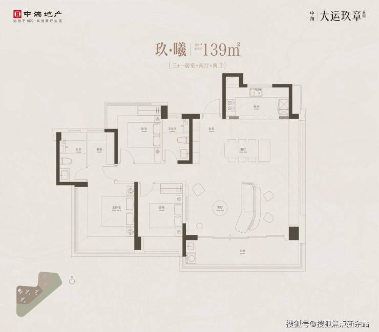 户型面积布局139平四房两厅两卫设计的是竖厅方正大面宽格局,进门入户玄关,客厅7米开间,LDKB一体化设计,超大客厅+餐厅位,还有东北侧超大飘窗景观面,动静分区,三开间朝南,主卧做到了270度转角无柱飘窗,U型厨房,卫生间干湿分离,得房率约93%(包含赠送),客厅正出7米长的超大观景阳台,全部东南朝向,看大运中心+大运公园景观。也可以做5房设计。户型亮点这户型是隐藏楼王腿!作为竖厅都可以做到3面采光的产品,270°景观客餐厅,在扩大了采光面的同时也增大了得房率,空间视觉感快能赶上197㎡的户型,山湖城三重景观全拿下,全玖章就这一条腿!