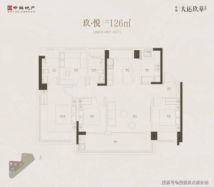 户型面积布局126平四房两厅两卫设计的是竖厅南北通透格局,进门入户玄关,客厅4.3米开间,餐客厅分离设计,四开间朝南,全屋八面飘窗,主卧做到了270度转角无柱飘窗,U型厨房,卫生间干湿分离,得房率约95.2%(包含赠送),客厅连接次卧出7.1米长的观景大阳台,全部主朝西南向,看大运公园景观。户型亮点配置采用高端豪装标准,门口的独立光厅区域,配上2开间阳台、3面飘窗,想挤入大运高端圈层,不用咬咬牙够大户型,126㎡就能满足你的需求。