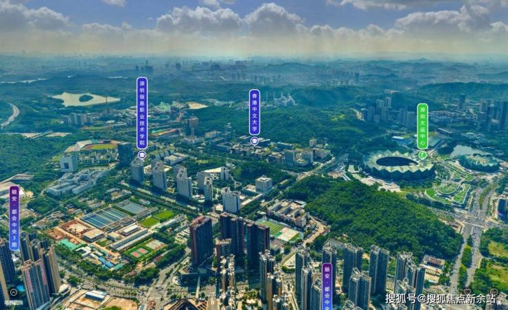 大运新城定位为深圳东部科创中心,周边聚集了高等教育、科研机构及高新技术产业。项目临近深圳广播电影电视集团制作中心,区域内规划有数字经济、文化创意等产业集群。