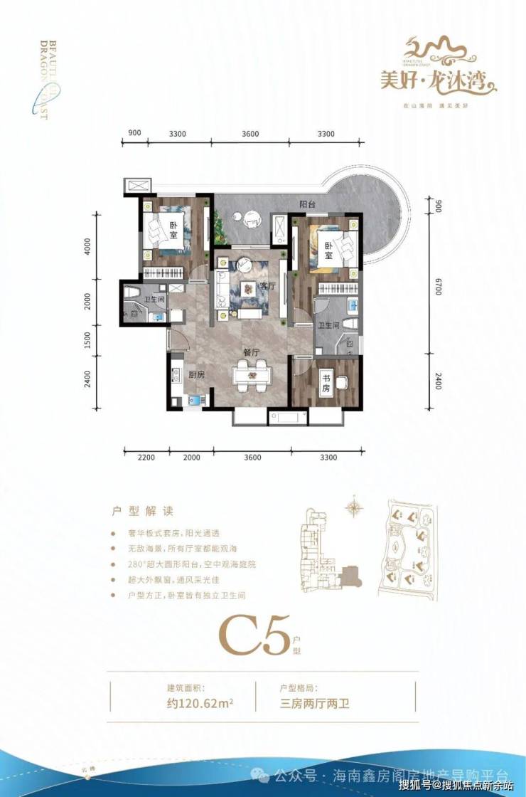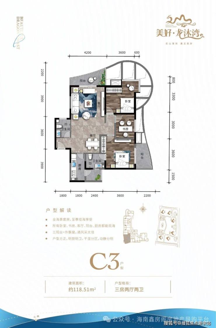 ④ 三房户型三面采光,空间方正合理,双独立明卫,270°环型瞰海阳台