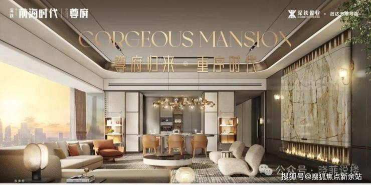 深铁府系精工携手匠心团队,联袂共筑世界湾居新坐标,香槟金搭配高级灰调立面,现代建筑与艺术风格交相辉映,勾勒前海天际美学封面。