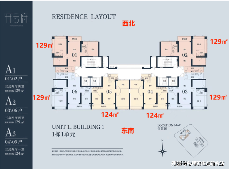 🔹1栋一单元A1、A2户型:面积约为129㎡