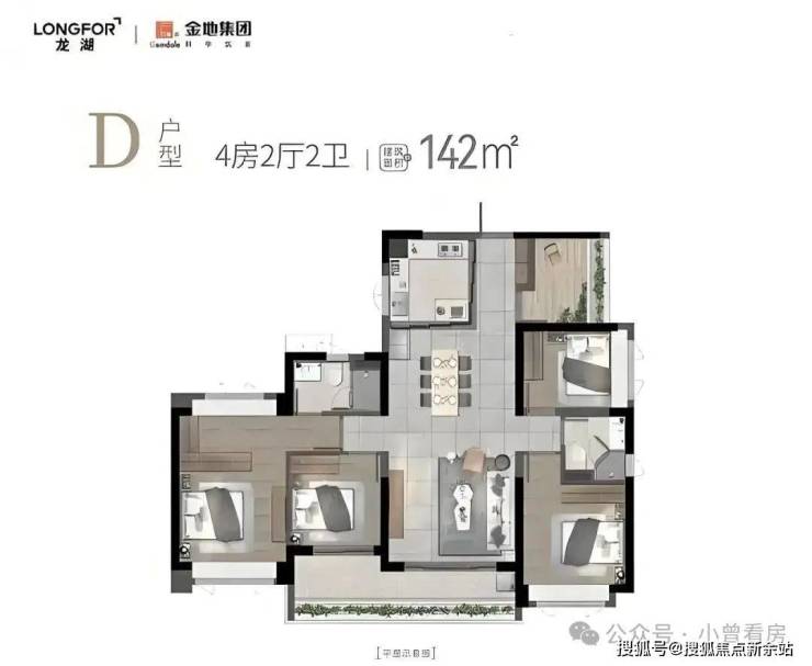141㎡的 4 + 1 房,四开间一线园景,约 7 米超长阳台,270° 园景无遮挡,LDK(客餐厅开放式空间)设计,主卧套房很宽敞。