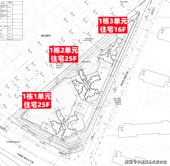 【楼高】1栋一、二单元25F,三单元16F