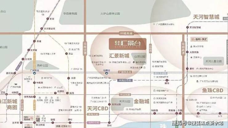 侨鑫保利汇景台位于广州市天河区汇景路北路,科韵路西侧,地理位置极其优越。东临科韵北路,南部为汇景新城龙熹山,周边道路网络发达,临近地铁3号线五山站,距离珠江新城仅5站之遥。