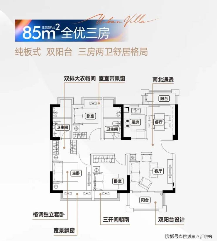 精研优居建面约85㎡三房户型,打造舒适从容双卫,主卧拥享独立卫浴空间,双卫生间轻松实现起居分流,偶尔有客人拜访也能应对自如,告别洗漱早高峰的焦虑等待,父母晨练,爱人上班,孩子上学,时间充裕,从容起居一步到位,让居家舒适品质度跃然升华。