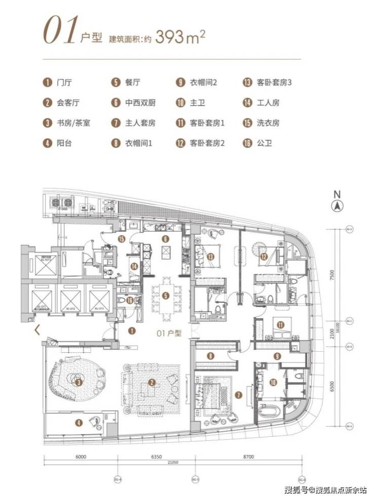 【T7-01户型鉴赏】约393㎡四房三厅六卫