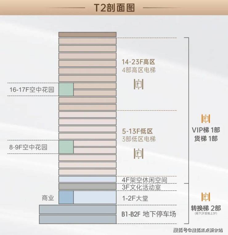 11部高效电梯:高低区共配置11台迅达品牌高速电梯,通过人脸识别及高效分区派梯。