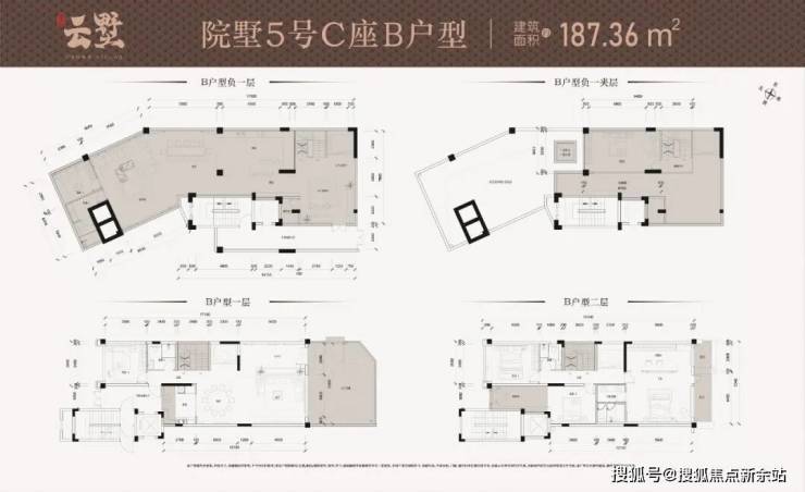 举个例子:187㎡户型,1-2层下叠户型,赠送前庭后院,还有二层空间地下室。