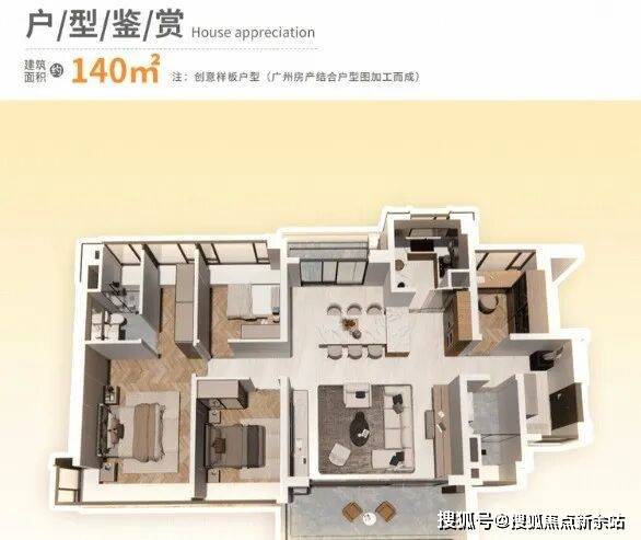 而建面约140㎡的四房,则做到了南北对流,炎炎夏日,也未必要开空调,有穿堂风灌入,足矣。还有超40㎡的LDK一体化超聚厅,与双面宽南向阳台相连,家庭聚餐、朋友聚会时,也能到享受铺满阳光的巨幕空间。