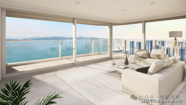 · 270° 景观阳台+客厅转角无柱设计+巨幕全景落地玻璃,至极“无遮挡瞰海”视野