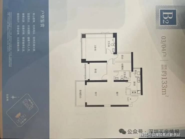 【124㎡的3+1房2厅2卫】1栋户型,竖厅格局,LDKB一体化设计,动静分区,主卧套间设计,还有一个多功能间可以做书房,U型厨房,公卫三段式分离,得房率:72.07%(不含赠送);