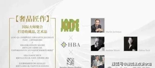 全球顶级建筑设计机构:JADE&QA(上海世茂深坑酒店、迪拜的 Jumeira Beach Hotel)全球顶级室内设计机构:HBA设计(苏州莱佛士酒店、成都费尔蒙酒店、河内洲际酒店、印尼洲际酒店等超是个五星级酒店设计)