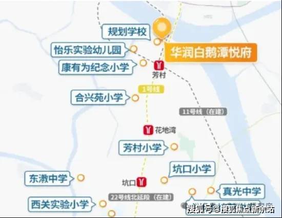 项目距离1号线白鹅潭TOD(芳村站)约400米距离,后期将会有4条地铁交汇,分别是1号线,11号线,22号线,和28号线;