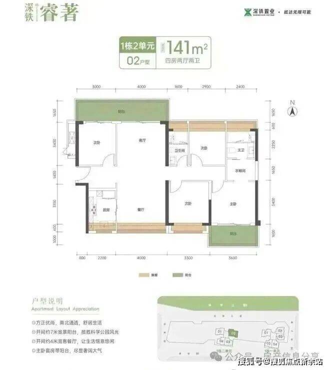 4、深铁睿著广场虽然是近期要入市的楼盘,但其也不是新规之后建设的楼盘,不过因为是高层住宅,不加赠送得房率在80%,加上赠送后得房率是在89.88-94.37%左右,其中的1栋2单元住宅2梯4户设计,是比较难得的,得房率也会是该小区内最高的,做到了户户朝南,或南北通透设计。
